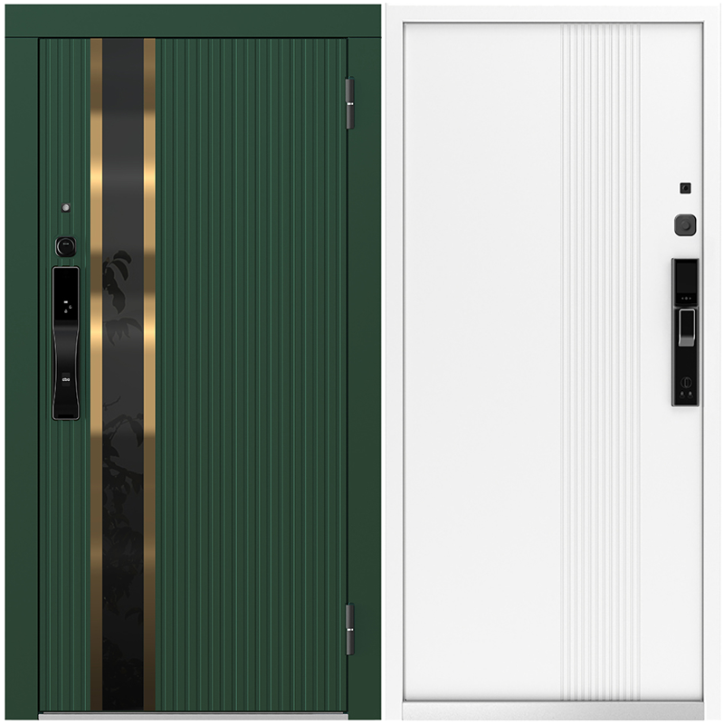 | ОТДЕЛКА СНАРУЖИ | Фрезерованная влагостойкая панель МДФ высокой плотности 16 мм, эмаль, цвет «Туманный лес» (цвет на выбор), вставка латунь с черным глянцевым стеклом |